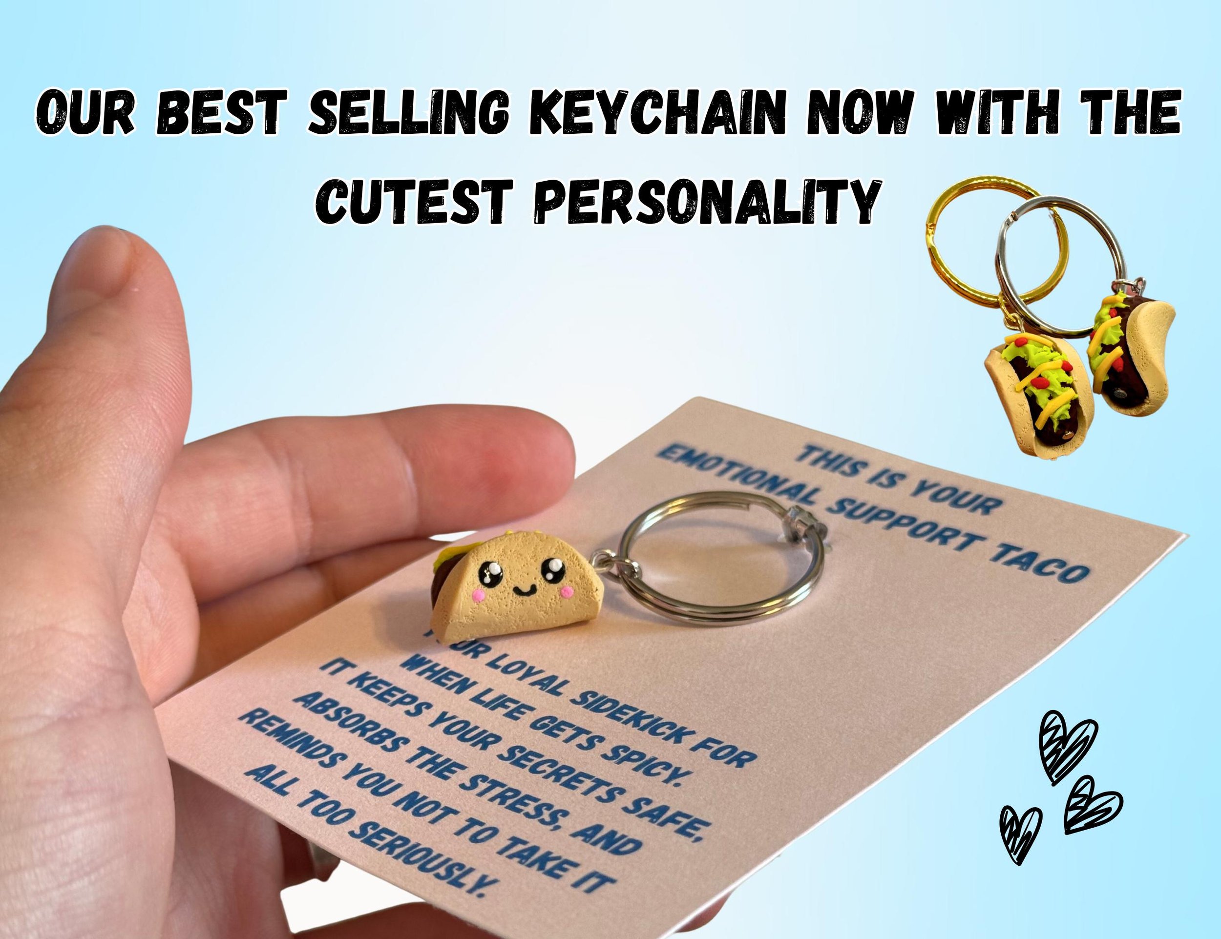 Whether you clip it to your keys, bag, or backpack, this Emotional Support Taco is ready to bring smiles, laughs, and a little extra comfort to your day. 💛